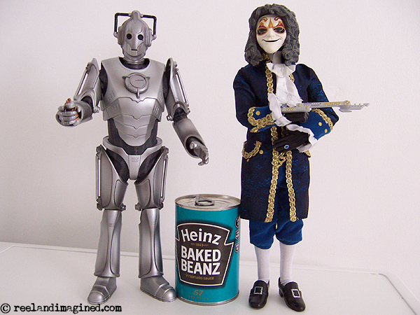 Toy cyberman and a toy clockwork droid next to a tin of baked beansDespite promising myself that I’d resist the lure of 12-inch Doctor Who figures (my five-inch collection takes up enough room/money), I’ve succumbed. It’s difficult to say no when Argos stick certain figures in their sales, and over the last month or so I’ve acquired the two toys - er, I mean collectors’ items - pictured in glorious blur-o-vision on top of my freezer (the can of beans is just for scale - it’s not a prized artefact or nothin’, tasty-lookin’ though it is).