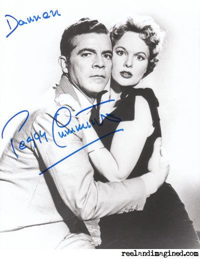 Peggy was the first guest I met that morning. She was also the first name to be announced that cemented my plans to attend the show. Within minutes of finding out that she’d be there, I was searching eBay, hunting down a suitable 8x10 to get signed. The end result is pictured at the top of this post, though it turned out that I needn’t have shopped for photos at all. Peggy’s desk at the NEC offered the collector so many options, from film stills to prints of posters (some featuring the film’s American title, Curse Of The Demon), that no one should have gone home disappointed.