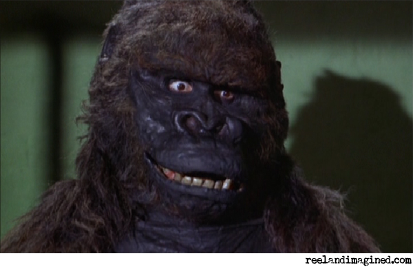 While the baggy-looking suit isn’t the best, the mask is memorable for all the right reasons, with its vicious-looking teeth and bright, staring eyes that just might haunt your dreams. Despite the film’s reputation for poor-quality effects, the ape cuts quite a figure on miniature sets (cheap-looking dolls doubling for actors notwithstanding), and enjoys some impressive compositing once loose on the streets.
