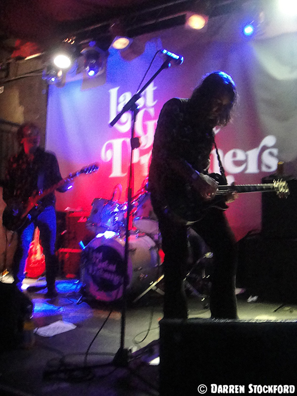 It’s Sunday night at The Purple Turtle in Camden. Last Great Dreamers are on stage, playing their first gig in 17 years, and Slyder’s footwear is disintegrating. On Tuesday, the guitarist was rooting around the back of his wardrobe, pondering whether to wear a pair of stack heels or some thick-soled brothel creepers. He went with the latter, and now his shoes appear to be creeping back to the brothel from which they came. With every step he takes, another small chunk of rubber breaks off the underside, laying what looks like a carpet of coal around his amp and mic stand.